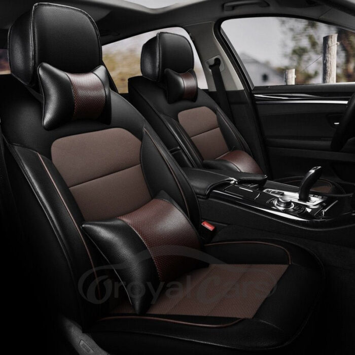 2 Headrests 5 Seats Universal Fit Seat Covers Wear Resistant Leather Skin Friendly Comfort Breathable Fabric Full Coverage Soft Wear-Resistant Durable Airbag Compatible 5-Seater Universal Fit Seat Covers