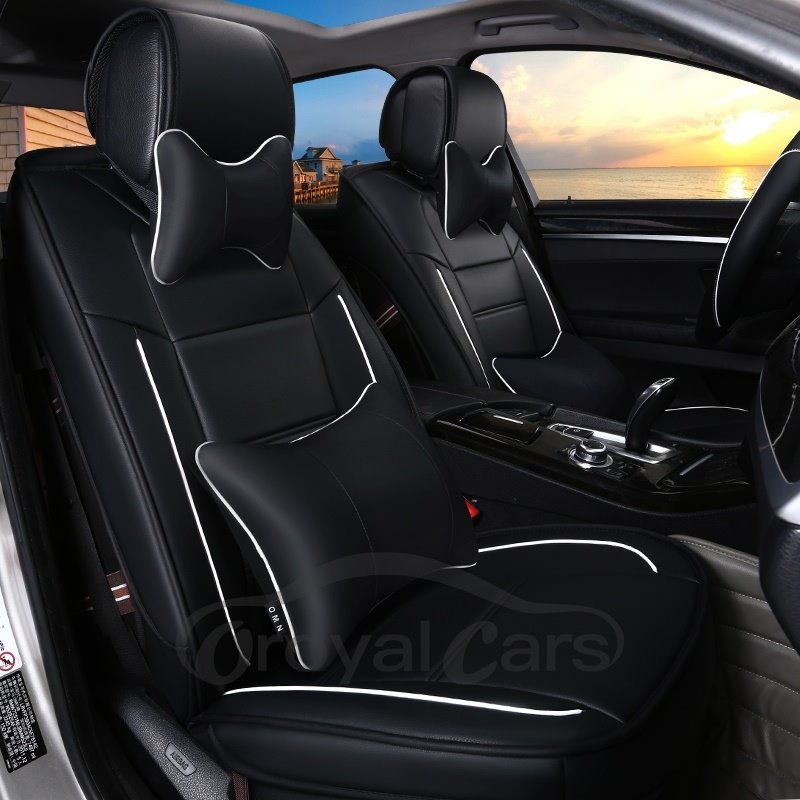 2 Headrests 5 Seats Universal Fit Seat Covers PU Leather Sport Seat Cover Full Coverage Soft Wear-Resistant Durable Skin-Friendly Man-Made PU Leather Airbag Compatible 5-Seater Universal Fit Seat Covers