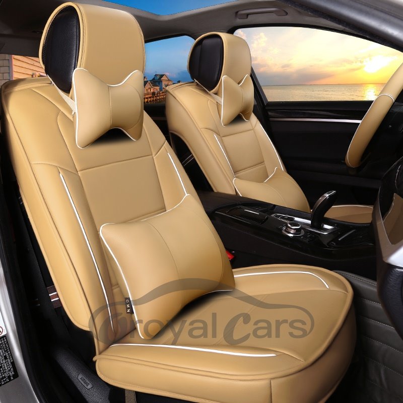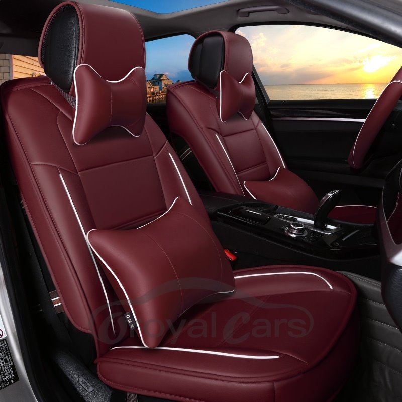 2 Headrests 5 Seats Universal Fit Seat Covers Wear Resistant Leather Skin Friendly Comfort Breathable Fabric Full Coverage Soft Wear-Resistant Durable Airbag Compatible 5-Seater Universal Fit Seat Covers