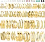 42 Pairs Gold Hoop Earrings Set for Women, Fashion Chunky Pearl Earrings Multipack Twisted Statement Earring Pack, Hypoallergenic Small Big Hoops Earrings for Birthday Party