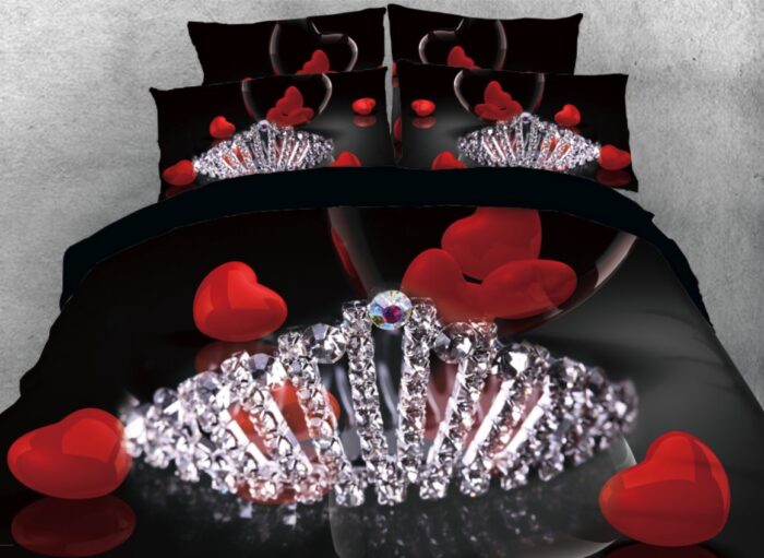 Be the first to review “3D Diamonds Crown and Red Heart Printed 4-Piece Bedding Set/Duvet Cover Set Black (Queen)” Cancel reply