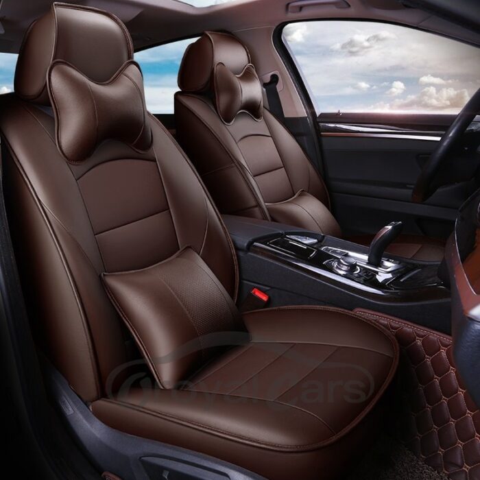 2 Headrests 5 Seats Wear Resistant Leather Skin Friendly Comfort Breathable Fabric Full Coverage Soft Wear-Resistant Durable Airbag Compatible 5-Seater Universal Fit Seat Covers