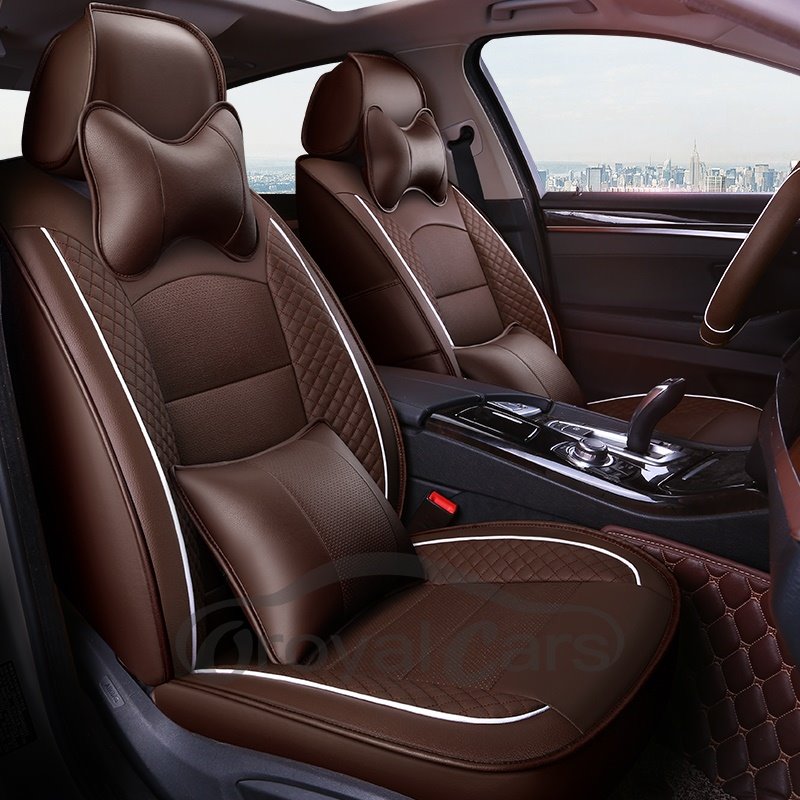 2 Headrests 5 Seats Universal Fit Seat Covers Wear Resistant Leather Skin Friendly Comfort Breathable Fabric Full Coverage Soft Wear-Resistant Durable Airbag Compatible 5-Seater Universal Fit Seat Covers
