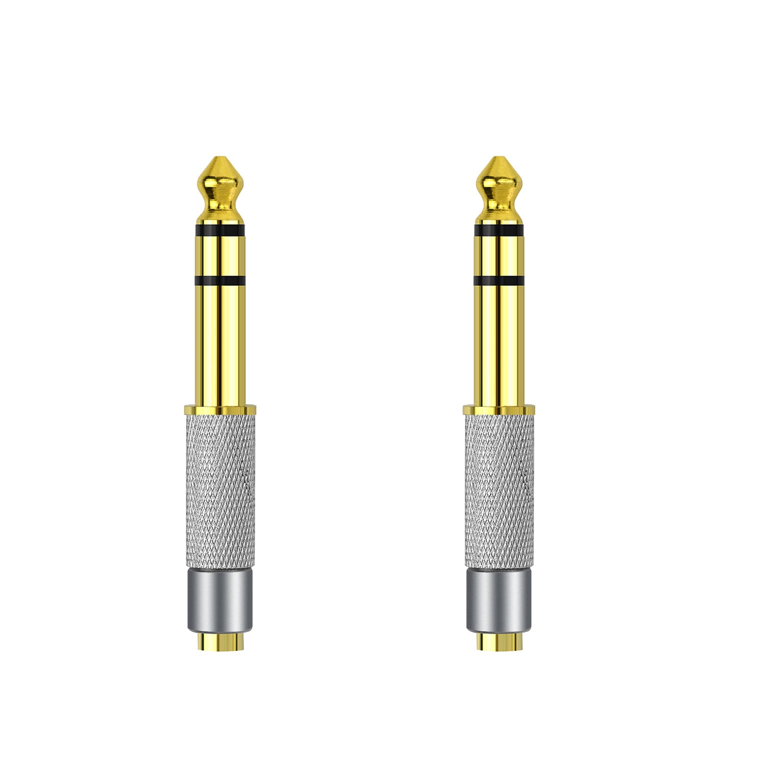 6.35mm (1/4 Inch) Male to 3.5mm (1/8 Inch) Female Stereo Audio Jack Adapter, Gold Plated Male to Female Plug Adapter for Audio Devices (2 Packs)