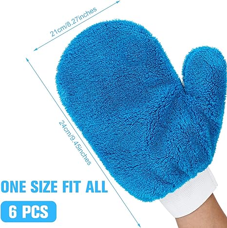 6 x Microfiber terry weave mitt with thumb for cars