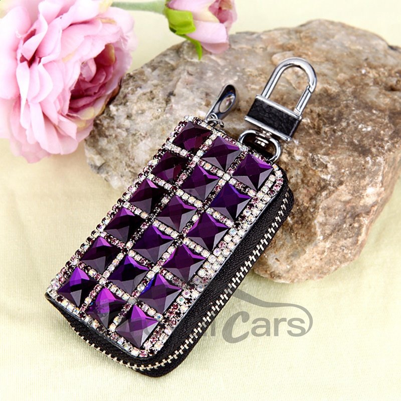 Home Decorations Universal Genuine Leather Purple Set with Diamond Car Key Case Wear-resistant and Durable Waterproof and Moisture-proof