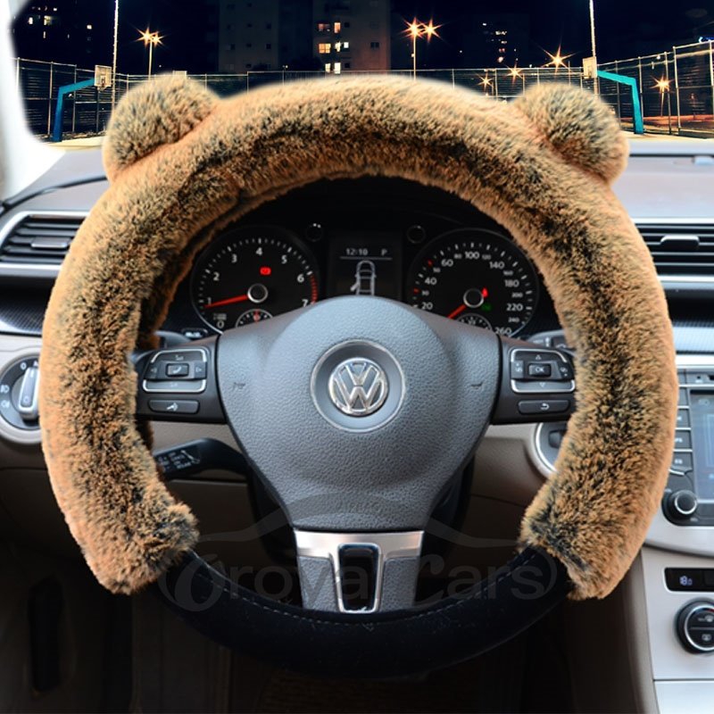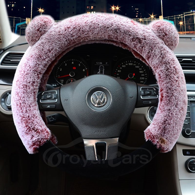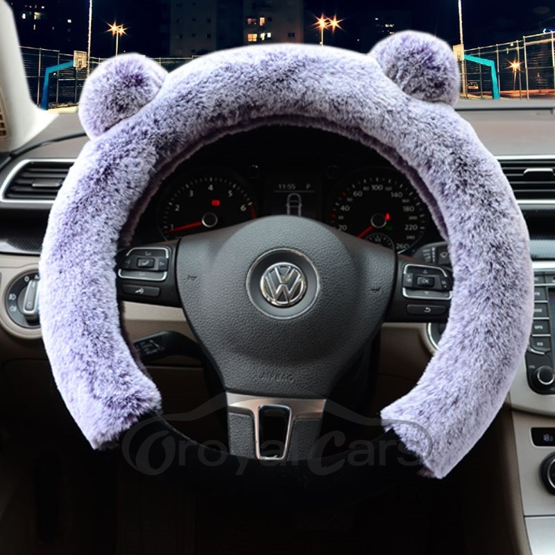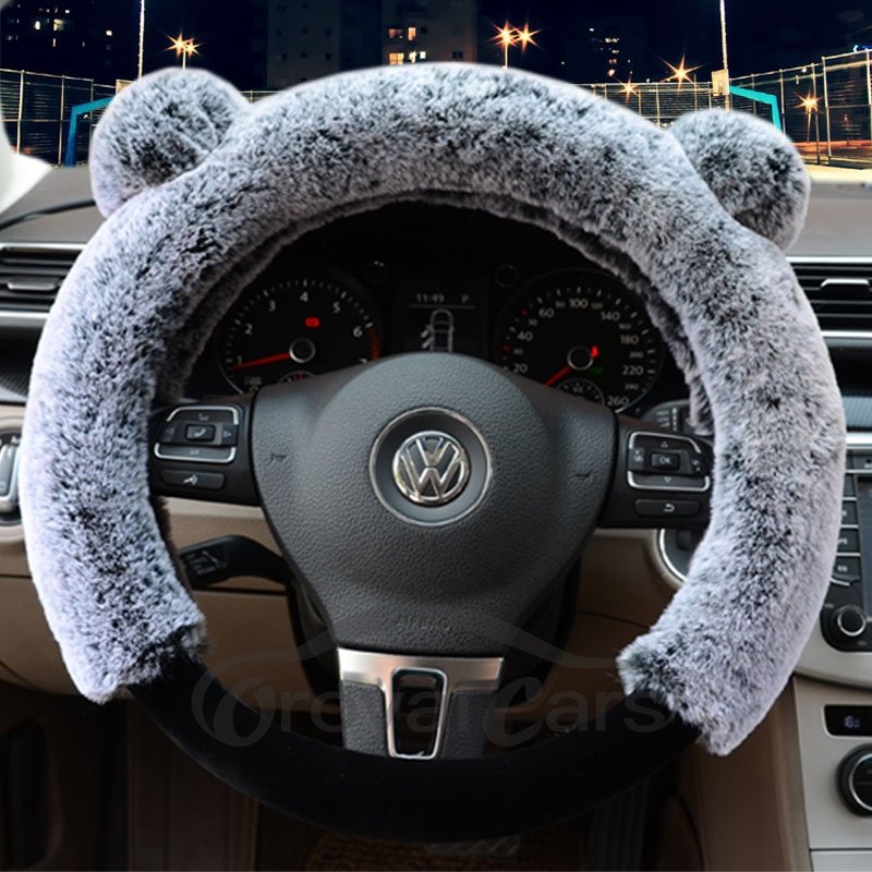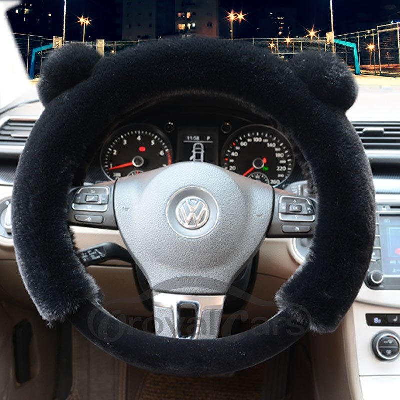 3D Panda Plain Plush 3-piece Non-slip Steering Wheel Cover