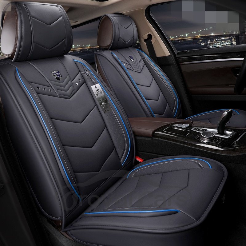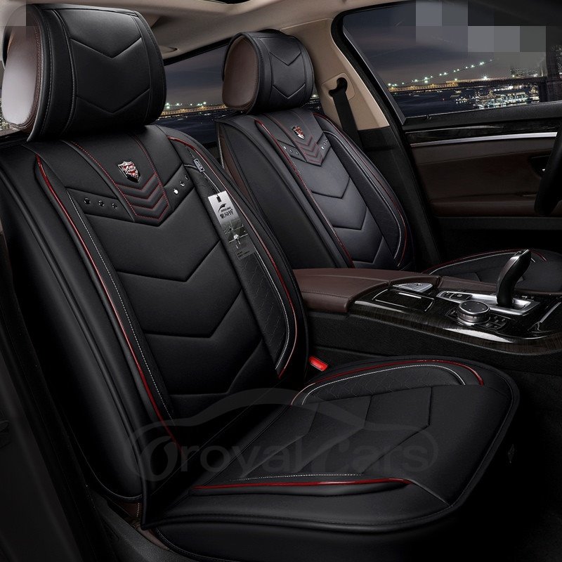 2 Headrests 5 Seats Universal Fit Seat Covers Wear Resistant Leather Skin Friendly Comfort Breathable Fabric Full Coverage Soft Wear-Resistant Durable Airbag Compatible 5-Seater Universal Fit Seat Covers