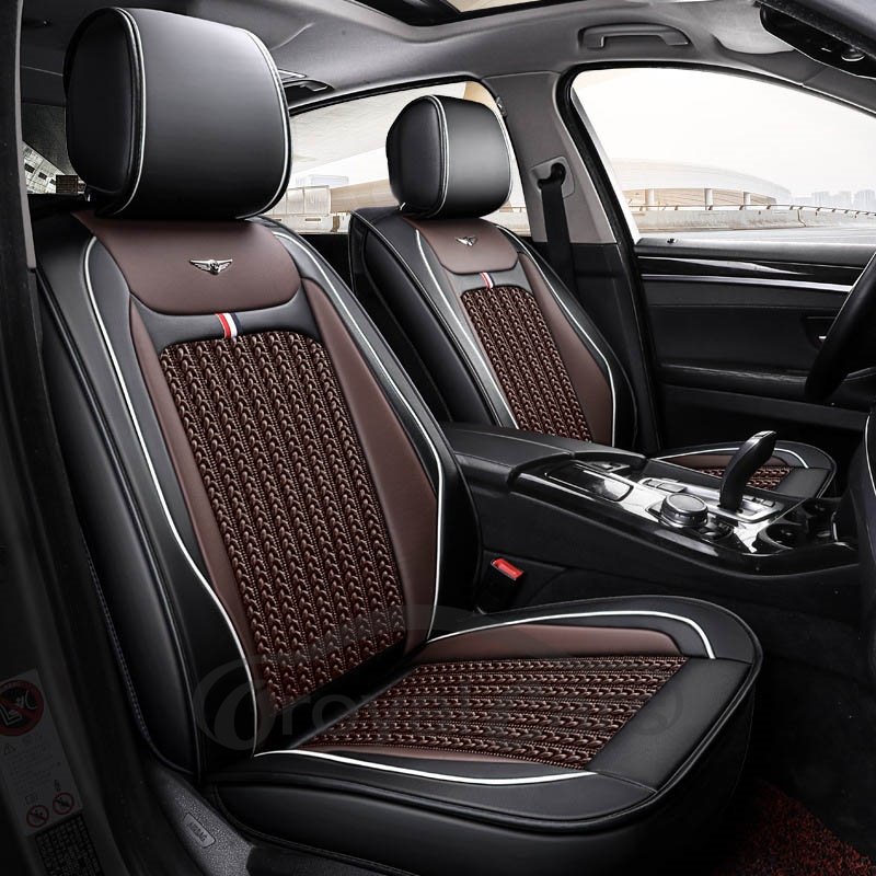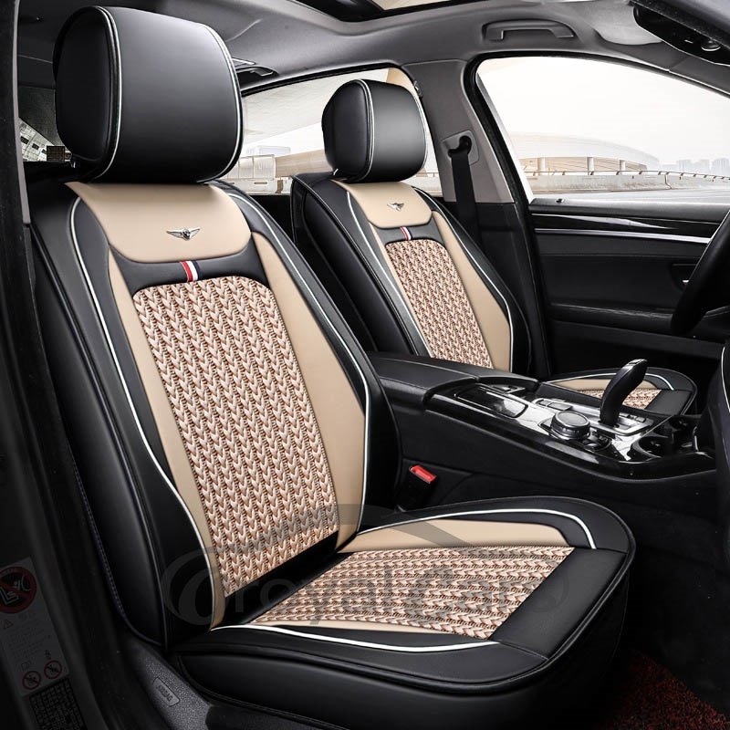 Home Universal Fit Seat Covers Business Style Breathable Ice Silk Constant Temperature Comfortable Color Block Universal Fit Seat Covers