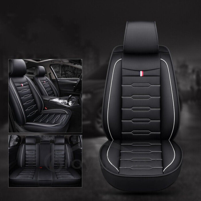 2 Headrests 5 Seats Universal Fit Seat Covers PU Leather Sport Seat Cover Full Coverage Soft Wear-Resistant Durable Skin-Friendly Man-Made PU Leather Airbag Compatible 5-Seater Universal Fit Seat Covers