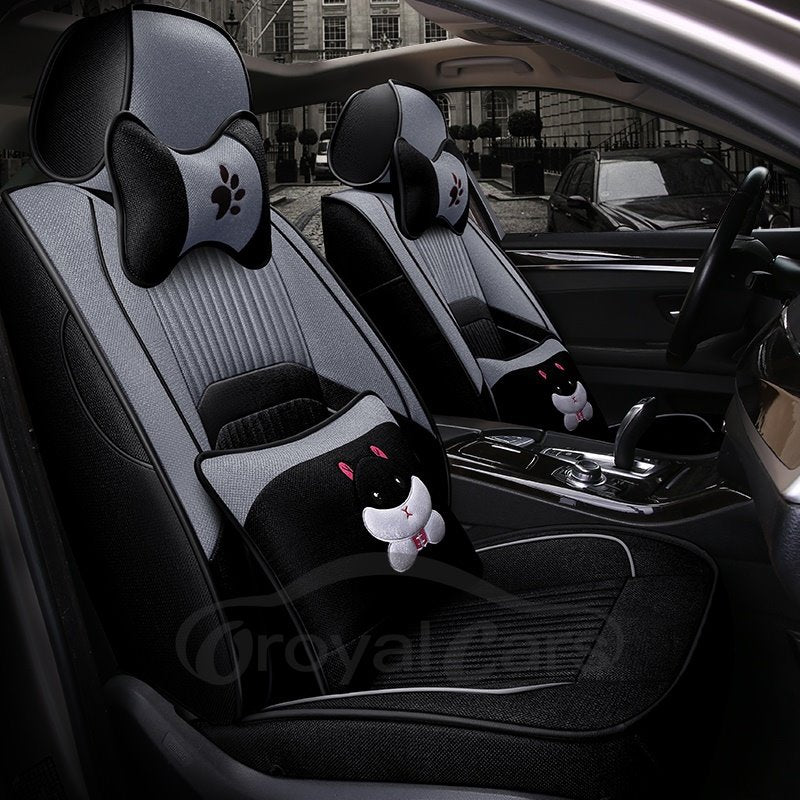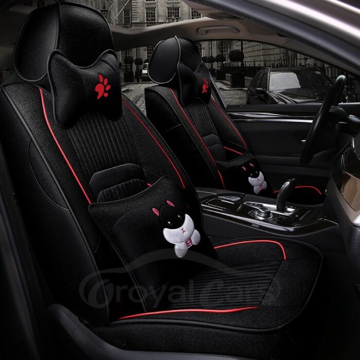 Including:Front Seat Cover*2, Rear Seat Bench Cover*1, Rear Seat Armrest Cover*1,Headrest Pillow*2, Lumbar Pillow*2