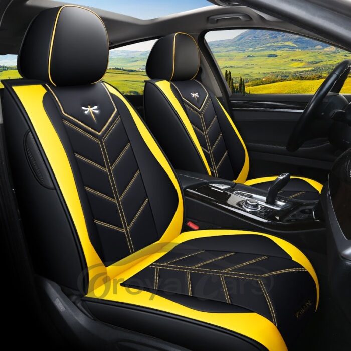 Home Universal Fit Seat Covers Full Coverage Exquisite Embroidery Design Of Dragonfly Hard-Wearing Dirt-Proof Unfading Leather 5 Seats Universal Fit Seat Covers