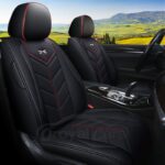 2 Headrests 5 Seats Universal Fit Seat Covers PU Leather Sport Seat Cover Full Coverage Soft Wear-Resistant Durable Skin-Friendly Man-Made PU Leather Airbag Compatible 5-Seater Universal Fit Seat Covers