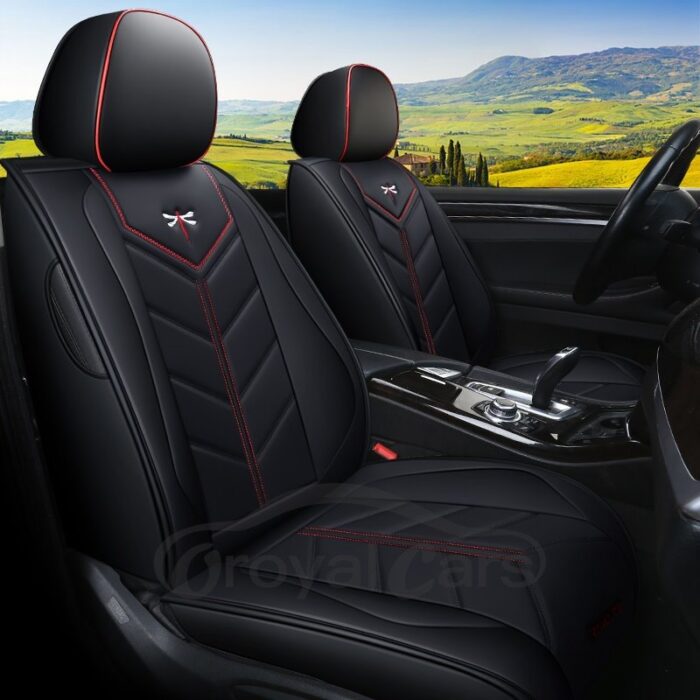 Full Coverage Exquisite Embroidery Design Of Dragonfly Hard-Wearing Dirt-Proof Unfading Leather 5 Seats Universal Fit Seat Covers
