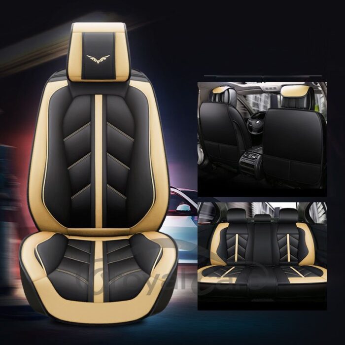 2 Headrests 5 Seats Universal Fit Seat Covers Wear Resistant Leather Skin Friendly Comfort Breathable Fabric Full Coverage Soft Wear-Resistant Durable Airbag Compatible 5-Seater Universal Fit Seat Covers