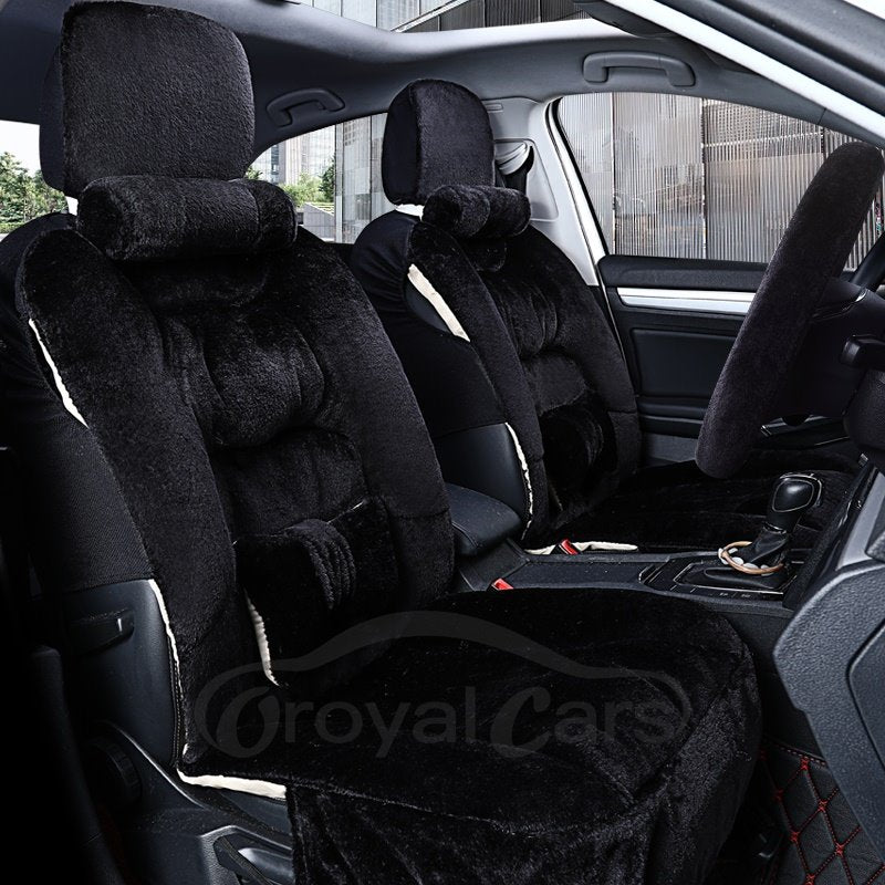 Winter Warm 5-Seater Full Coverage Custom Made Cashmere Material Airbag Compatible No Hair Removal Fluffy Soft Universal Fit Seat Cover