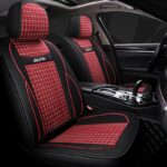 2 Headrests 5 Seats Universal Fit Seat Covers PU Leather Sport Seat Cover Full Coverage Soft Wear-Resistant Durable Skin-Friendly Man-Made PU Leather Airbag Compatible 5-Seater Universal Fit Seat Covers