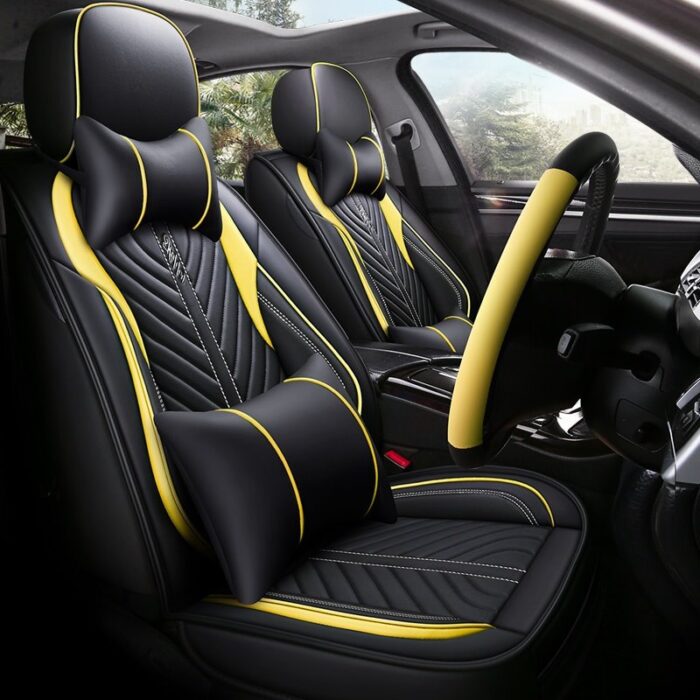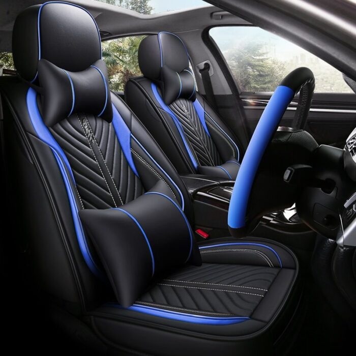 2 Headrests 5 Seats Universal Fit Seat Covers Wear Resistant Leather Skin Friendly Comfort Breathable Fabric Full Coverage Soft Wear-Resistant Durable Airbag Compatible 5-Seater Universal Fit Seat Covers