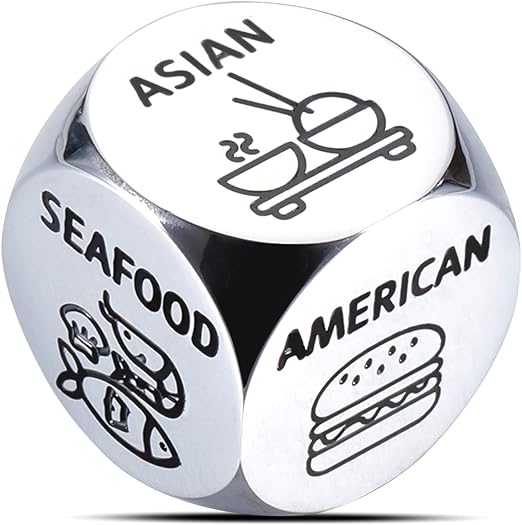 • ❥Date Night Gift Ideas: Funny date night food decision dice has six different food choice which make it a gag funny gift for your awesome husband, boyfriend, fiancé. You can spin the dice to decide what to eat at date night. Naughty gift for man woman in Valentine’s Day, anniversary gifts for couples, husband or wife, wedding gift for couple, engagement wedding gift for bride and groom, great boyfriend Husband Christmas gifts, sweetest day gift for boyfriend girlfriend.