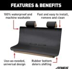 The ARIES Seat Defender is a universal, use-as-needed seat protection system that readily installs whenever you need it. It provides an instant defense against dirt, spills, pet dander and any other threats to your vehicle’s interior. What makes it unique is its use-as-needed design. Rather than being a permanent cover-up for unsightly interior that has already been damaged, the Seat Defender acts as a barrier to prevent the damage before it happens. Unlike seat covers that require tedious installation, the Seat Defender is designed to be easy to put on and take off, whenever needed. It attaches securely to the headrest and conforms to the shape of the seat, giving the seat a tough, waterproof outer layer. The ARIES Seat Defender is also easy to store and keep clean. Because it is not a permanent seat cover, it is designed for fast cleanup, fast foldup and fast installation the next time you need it. It easily protects against wet clothes, dirty tools, muddy sports equipment, shedding pets, sandy swimsuits, messy fast food and more. It is also 100% machine washable and can be stored in any small compartment in your vehicle. The ARIES Seat Defender is made out of a two-sided material to provide a sophisticated barrier against potential threats. The underside is a layer of water-resistant thermoplastic rubber (TPR). TPR is durable and wear-resistant and provides added comfort and safety by gripping the surface of the seat. The top side is a woven 600-denier terylene fabric that keeps dirt and spills out and maintains comfort for the user. The ARIES Seat Defender is perfect for pet owners, outdoor enthusiasts, soccer moms, industrial and commercial workers, frequenters of the beach or boat landing and many others.