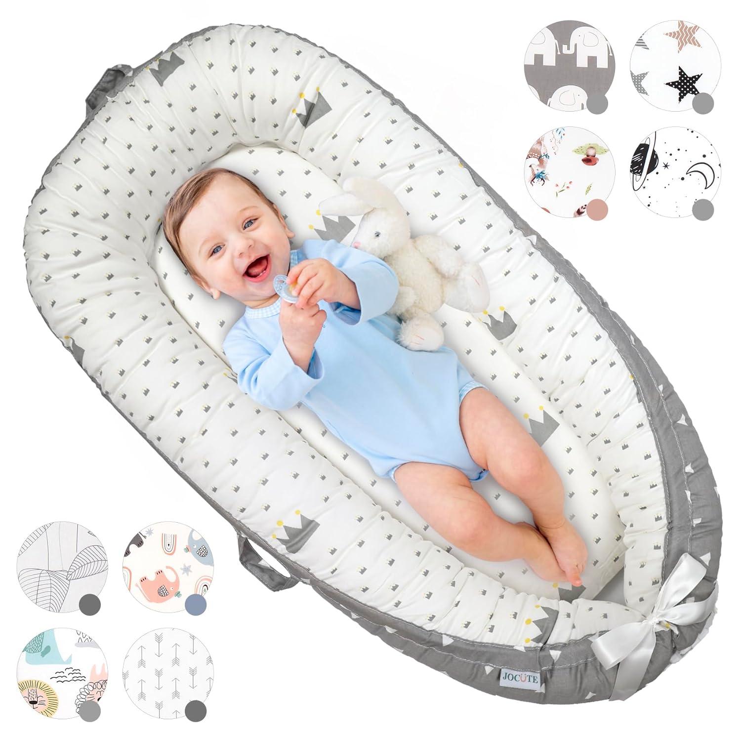 Our newborn lounger cover comes with 2 adjustable strap ties so you can loosen or tighten the cord at the end of the bumpers to fit your baby’s length and protect your infant from collisions. It also has a breathable double-sided cover, super soft, & skin-friendly insert cover that can be easily taken off for washing. Our lounger features easy set-up and disassembly and is also available in unique patterns and colors that make it ideal for boys and girls.