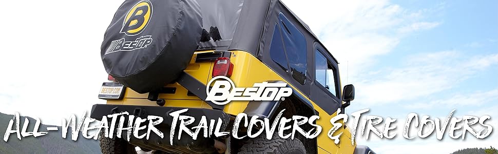 Bestop Custom-fit Tire Cover uses same premium color-matching fabric as Bestop supplies on many factory soft tops for lasting protection of that expensive spare tire. Constructed with industrial strength thread with sewn-in, full-perimeter elastic band for better fit. Available in sizes to fit up to 35-inch tire/wheel combinations. Designed to fit typical tire sizes on Jeep Wrangler or truck/SUV’s. 1-year Limited Warranty.
