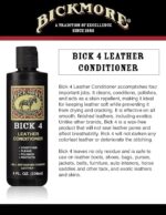 El acondicionador de cuero Bickmore Bick 4 está especialmente formulado para acondicionar, limpiar, pulir y preservar todo el cuero con acabado suave. Bick 4 es ideal para reacondicionar cuero viejo o seco, así como para mantener la suavidad, transpirabilidad y brillo del cuero nuevo. Nuestra fórmula no oscurecerá las pieles terminadas ni deja residuos no deseados en ningún producto de cuero. Prueba Bick 4 en:
