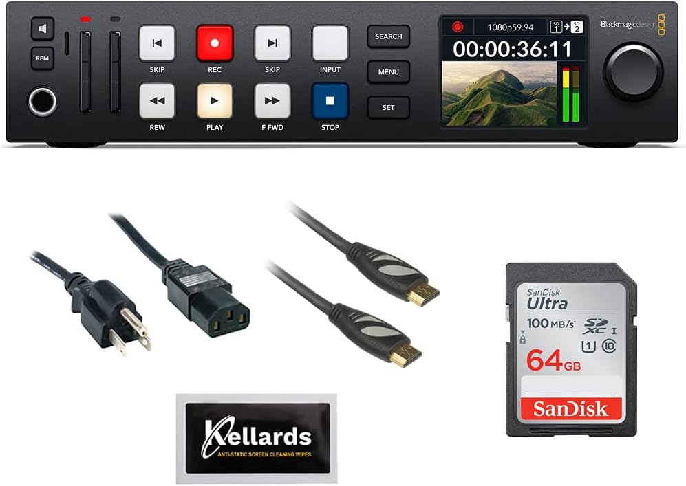 Blackmagic Design HyperDeck Studio HD Plus Bundle with 64GB Ultra SDXC Memory Card, PC Power Cord, HDMI Cable and Screen Cleaning Wipes (5-Pack)
