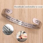 • Adjustable bracelet: L: 6.29″, W: 0.31″. Adjustable to fit most wrists. Uplifting quoets engraved cuff bracelets for women also can be given ad birthday gifts for her, cool anxiety bracelet for women, gifts for people with anxiety