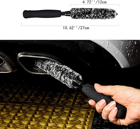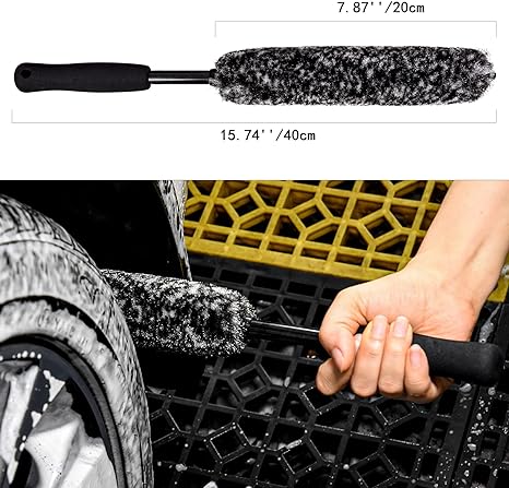 1x Grey Rim Cleaning Brush, 1x Black car detailing brush |