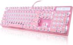 - 【 Both For Office & Gaming 】 – With 26 anti-ghosting keys and adjustable rear feet, this cute keyboard has good performance both in office and gaming