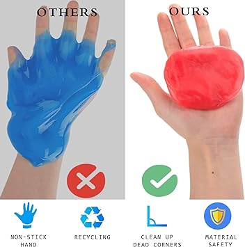 - HIGH-TECH CLEANING MATERIAL& NO STICK HANDS: Car cleaning gel is made of high-tech material with The scent of natural flowers and herbs. Our car cleaning putty has been readjusted the proportion of each component so as to make its elasticity more stronger. No sticky hands or broken, and high efficient to clean dust or debris. car slime for cleaning pick up all dust and debris and leaves no residue.