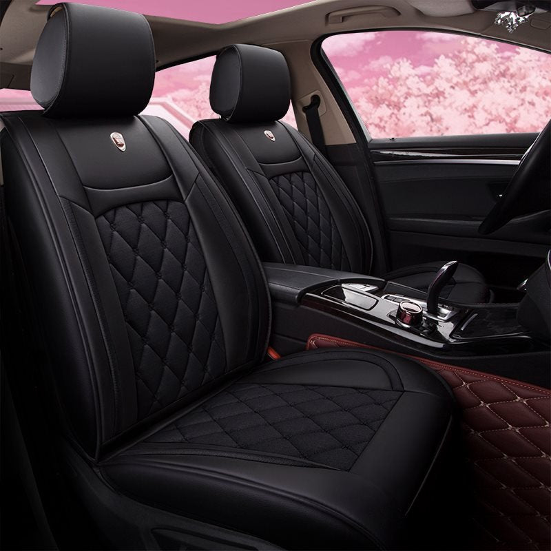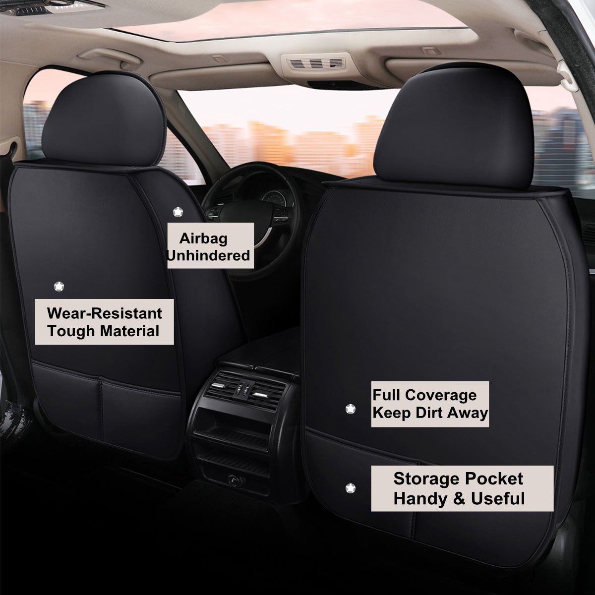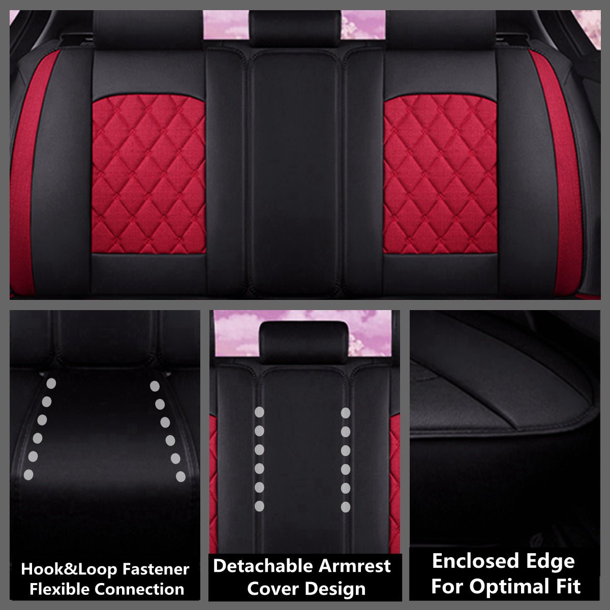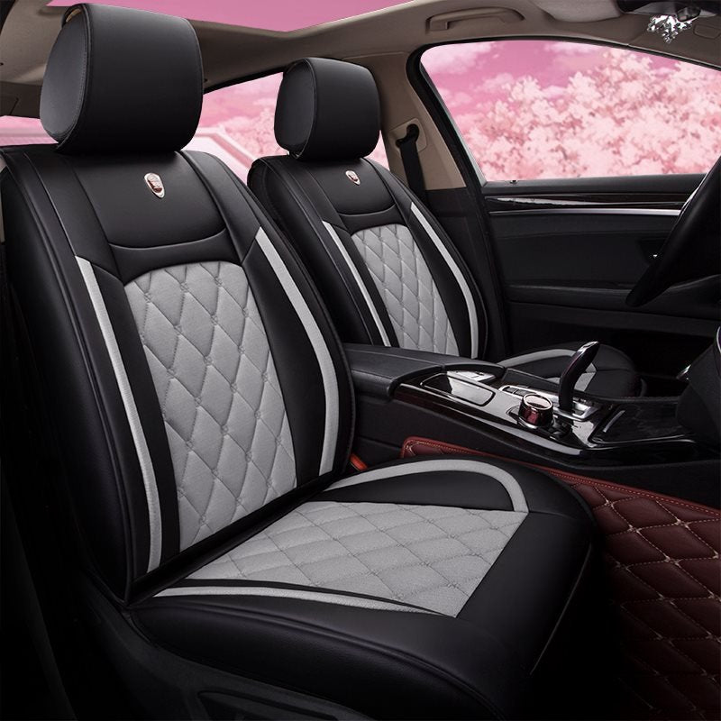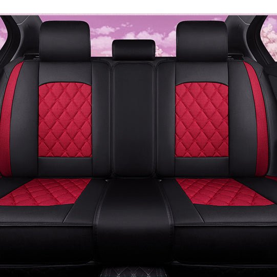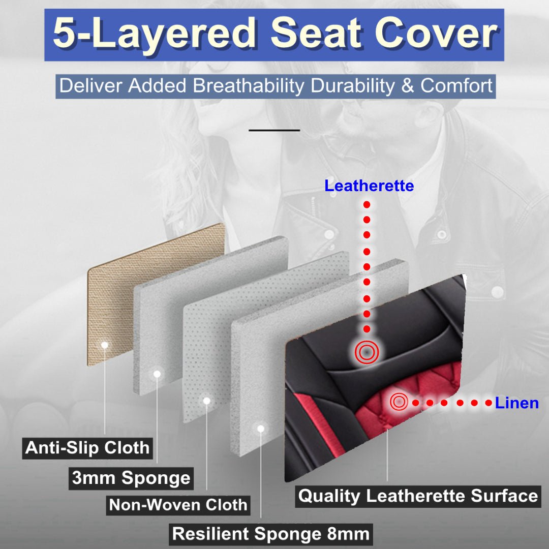 - QUALITY MATERIAL: Made of durable leatherette and linen for seating area, the seat cover set endures through years to come.