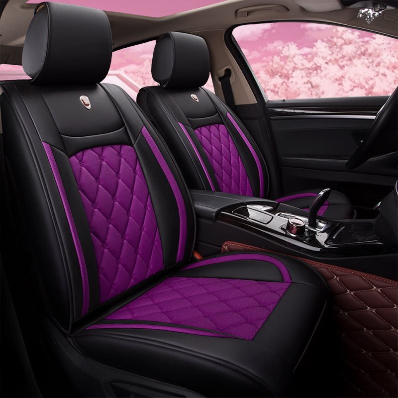 Shield your car seats from abuse with these stylish faux leather and linen car seat covers. The diamond pattern quilted stitching on the linen fabric gives these covers a sleek yet elegant look, while the density sponge and breathable non-woven fabric filling provide the added comfort and support. These covers are a universal fit for most cars, including Tucson, Murano, GS400, Forte, C-Max, and Malibu. Order your set of faux leather and linen car seat covers today and enjoy the peace of mind knowing that your car seats are protected from abuse.