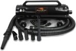 Make drying cars, motorcycles and airplanes a breeze with the industrial twin turbine power of the MasterBlaster. This innovative MasterBlaster dryer, cuts drying time by as much as 75 percentage. Literally blast the water off of any surface. All steel power units are easy to use and deliver high performance. Water is easily and thoroughly eliminated from every crevice on your motorcycle, car or truck. The MasterBlaster has an 8.0 peak horsepower motor that blasts air at an impressive 58,500 feet of air per minute. The MasterBlaster now comes with wheels for easy maneuvering around your vehicle or bike. This blower is equipped with two twin turbine engines for two levels of velocity for super-fast drying or for blowing off smaller more fragile areas. The filter is easy to clean and can be washed and reused. It has no heating element so it dries even heavy coated dogs without drying out their coats.