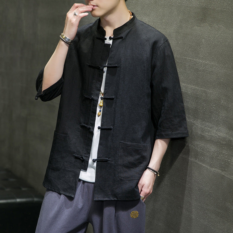 Chinese Style Men’s Linen Shirt Chinese Cotton Linen