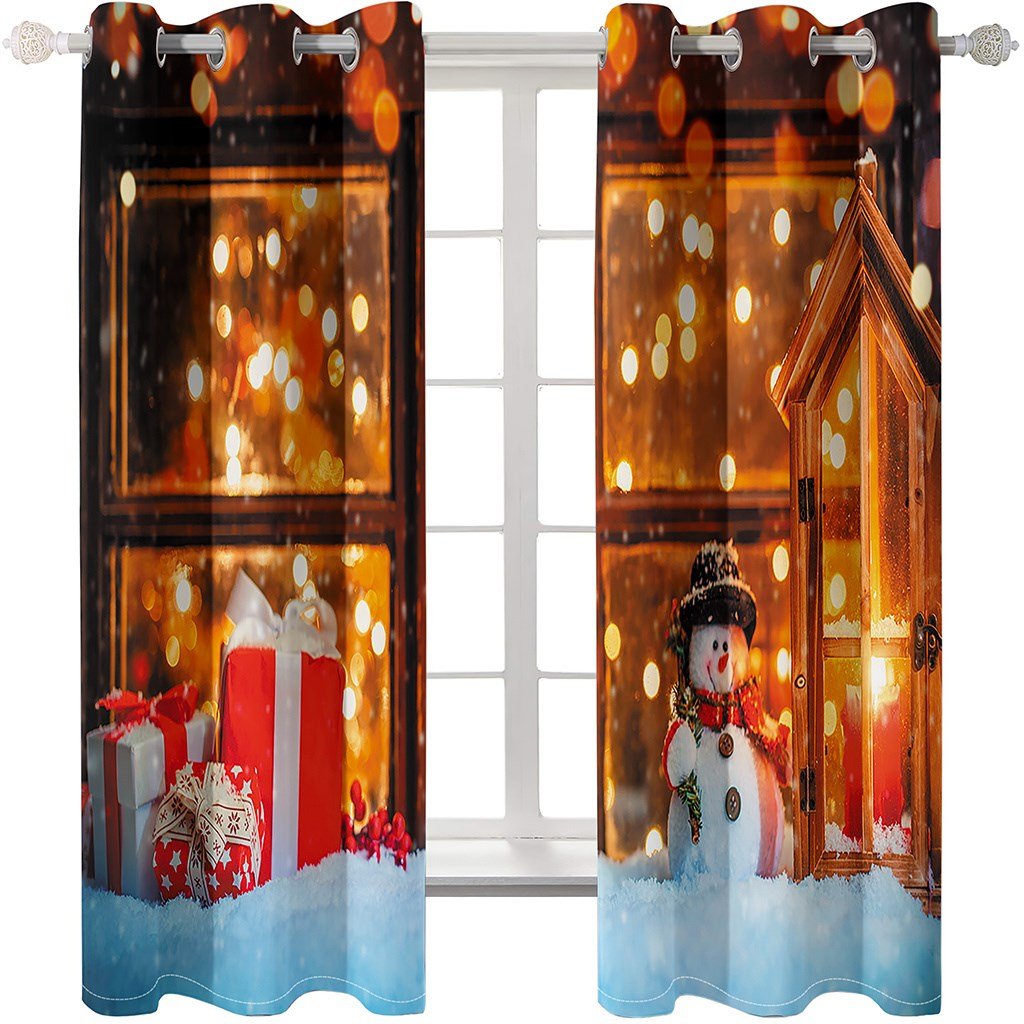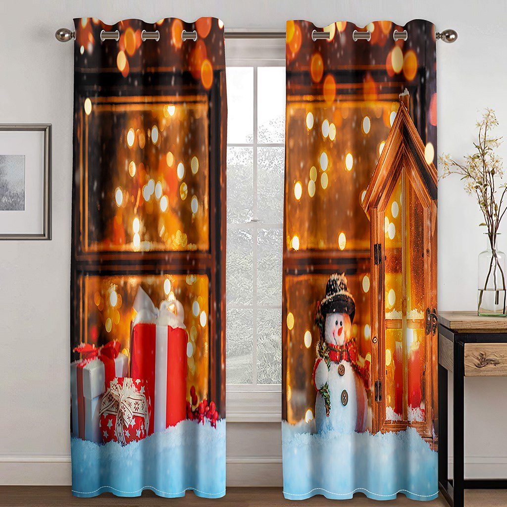 3D Blackout Curtains Christmas Fake Window Snowman Xmas Print Curtains for Living Room Bedroom Window Drapes 2 Panel Set