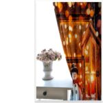 ▼Overview     There are two arched doors with flowers and grasses on the picture of the curtain just like lawn and