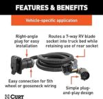 There is nothing like the luxury and power that go along with heavy-duty towing. 5th wheel RVs offer a deluxe, home-away-from-home experience unlike any other, while gooseneck trailers possess a strength that far surpasses most other trailer options. As with any trailer, however, 5th wheels and goosenecks must be equipped with the proper lighting and electrical systems, and tend to require even more complex connectors than a standard receiver-type trailer setup. Make things simple with a CURT 5th wheel / gooseneck extension harness. These wiring harnesses are designed to put an extra connector socket in the bed of your pickup truck while still retaining power to the rear connector socket mounted on your bumper. This is done by plugging into the back of the existing original equipment (OEM) harness and routing through the body of the truck to a hole in the truck bed, providing a connector that is ready to accommodate your 5th wheel or gooseneck trailer. This CURT extension harness is designed to work with 7-way RV blade connectors and comes in a length of 7′. It is compatible with a certain models of Chevrolet, Dodge, Ford, GMC, Nissan, Ram and Toyota (see application to verify fitment). When you need a towing electrical solution that allows you to switch back and forth between your receiver hitch and specialized trailer hitch, CURT gets you plugged in.