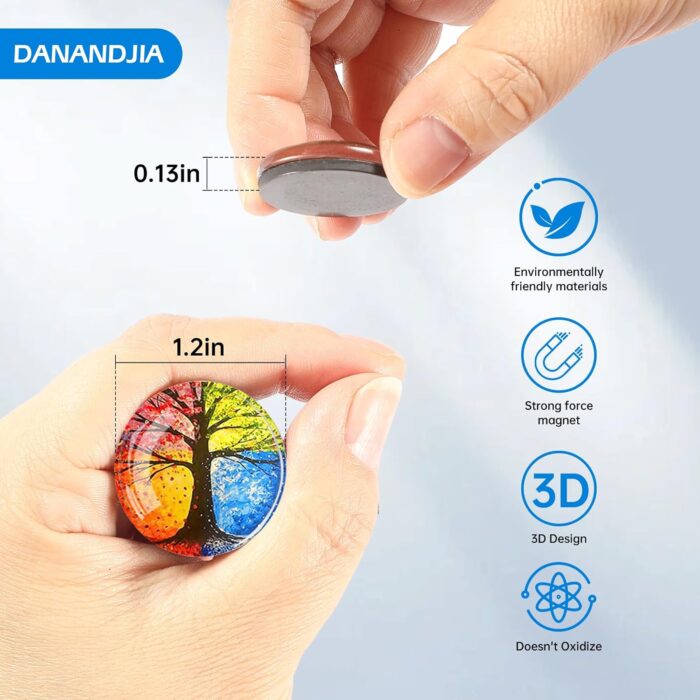 DANANDJIA 12Pcs Glass Strong Magnetic Refrigerator Magnet Fridge Sticker,Life Tree Crystal Fridge Magnets Decoration for Crafts,for Kitchen Refrigerator,Dishwasher,Cabinet,Office Whiteboard,School
