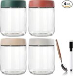 • ✅ 16 oz food jar set with lids includes: 4 glass jars with lids, a small spoon and an erasable pen. Glass yogurt jars with lids combine practicality and cute appearance, perfect for making overnight oats, pudding and yogurt. It can also be used to store snacks, spices, coffee beans and more.