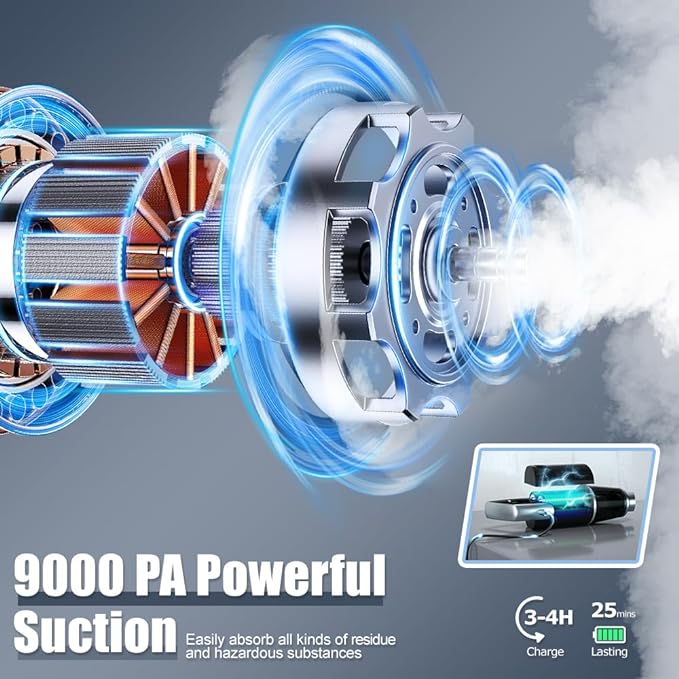 - 【Inalámbrico y portátil】: la aspiradora inalámbrica para automóvil te hace evitar la molestia de enredos de cables, y tu trabajo de limpieza se vuelve más flexible. La aspiradora de automóvil equipada con una batería de alta capacidad puede proporcionar una duración de la batería de larga duración de 25 minutos para que no tengas que preocuparte de que la batería se agote durante el proceso de limpieza. Elegir esta mini aspiradora puede hacer que su trabajo de limpieza sea más eficiente y rápido, ahorrándole tiempo y energía valiosos.