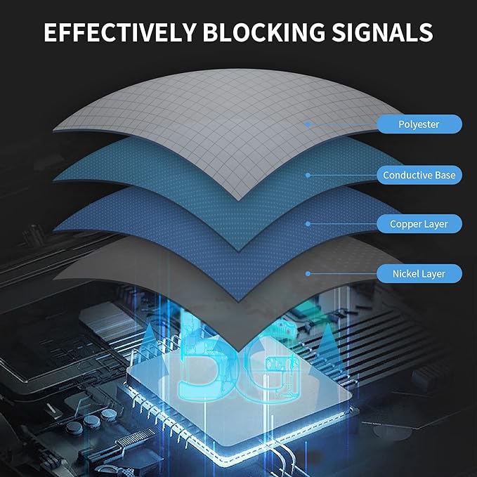 - [Superior Protection]: Military grade Faraday fabric is made of copper + nickel + polyester, it can effectively block Wi-Fi, cell phone signals, GPS and RFID. very effective in protecting our health and privacy.
