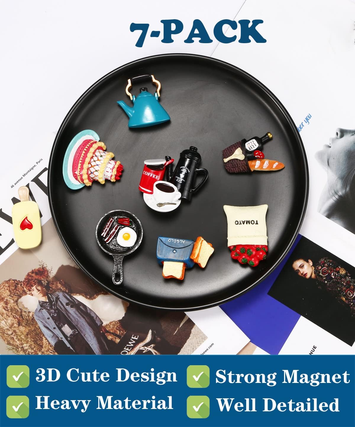 • 【Excellent Magnets Gifts】: 7-PACK in a box, the cute and colourful food shapes fridge stickers looks like real delicious foods that make you want to eat . Funny fridge magnets bright up your kitchen, office and school classroom. It is a perfect gift to your family, kids, friends, students and yourself