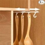 Funnacle 2pcs Under Cabinet Hooks Rotating Kitchen Utensil Holder 304 Stainless Steel Adhesive Utensil Hanging Rack for Kitchen Utensils/Tools/Towel/Knife(2, Brushed Nickel)…