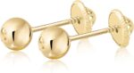 | Earring Type | Classic Golden Ball Stud Post Earrings | Delicate Stud Post Earrings with 5 Petal Flower and CZ Diamond | Unicorn Shaped Stud Earrings | Small Yellow Gold Stud Earrings with Simulated Diamond | Pear Teardrop Halo Earrings, with Simulated Ruby | Small Yellow Gold Moon Shaped Earrings |