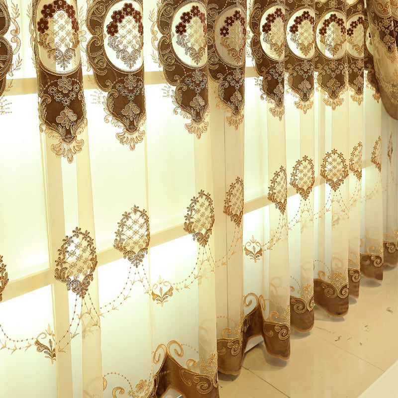 You can decor your living room and bedroom with this embroidered sheer curtain which could add more romantic and wispy to your life. With high quality, it won’t fade, fade or off-lining. And we have matching sheer with it, if you like, please search for spu 758603.
