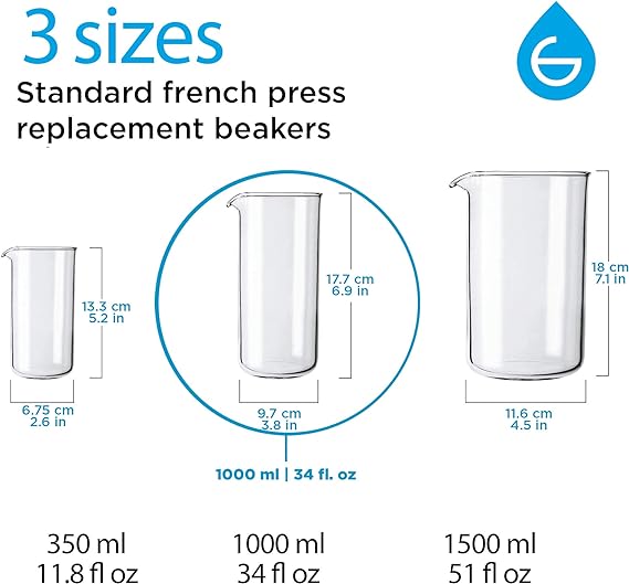 The GROSCHE Replacement Beakers are deisgned to fit most presses by all major brands. Please be sure to check the exact size of your french press beaker before ordering.