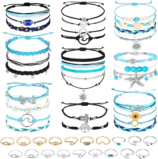 • Size information: each beach surfer strand wave bracelets can be adjusted from 7 to 10 inches in length, you can easily adjust them to fit the sizes of your wrist and ankle; The rings come in many different sizes, suitable for most women and girls