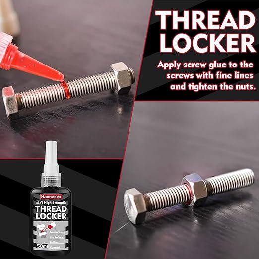 Hannaera Lock tight threadlocker 271, also known as screw fasteners or anaerobic adhesive,it provides a strong and consistent lock that keeps everything firmly in place. No more worrying about tangled threads and unstable nuts or bolts.